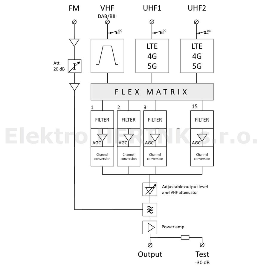 Třem vstupům lze přiřadit až 50 kanálů. Každý z filtrů je současně kanálový procesor (frekvenční měnič).