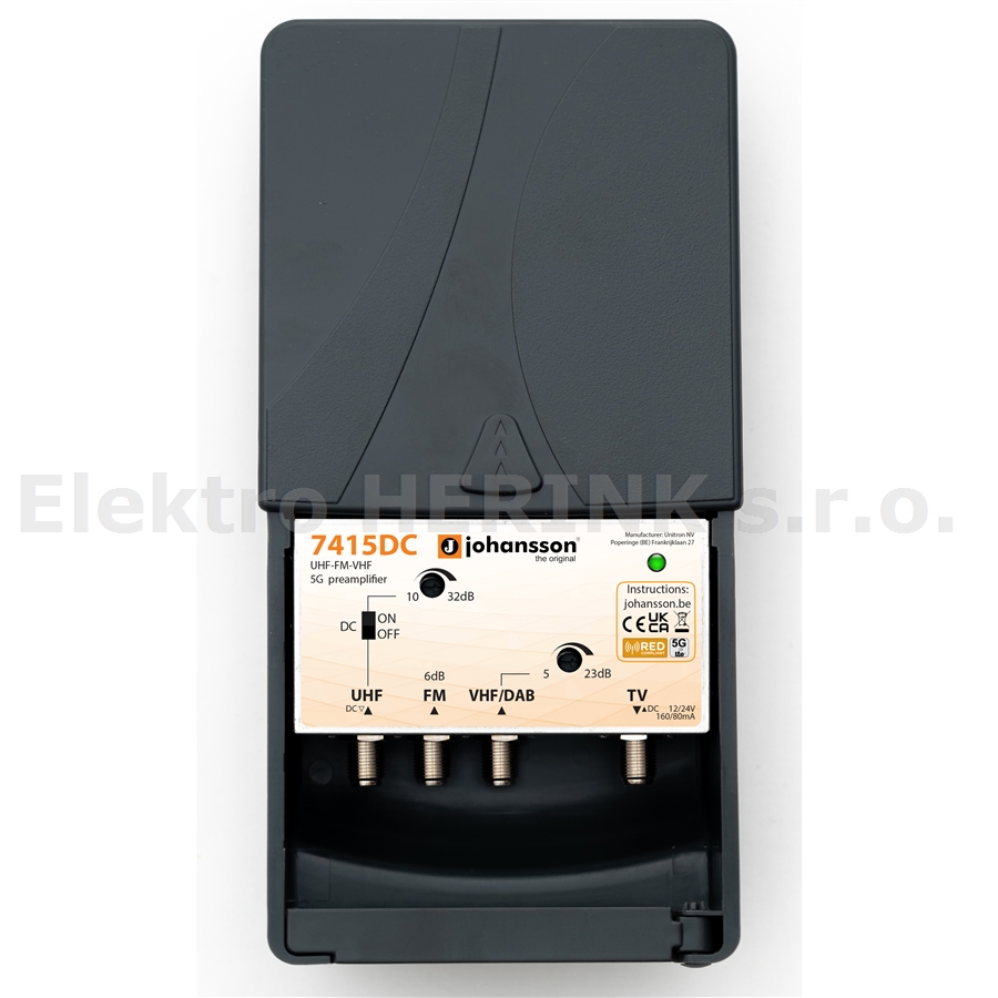 Johansson 7415 DC zesilovač FM, III, UHF (6, 23, 32 dB), 24 V, 5G
